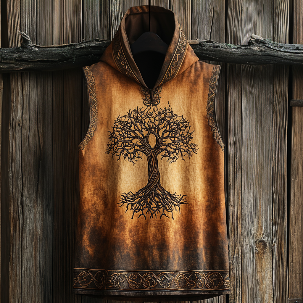 Men’s Viking Tree Of Life Art Cozy Linen Hooded Vest
