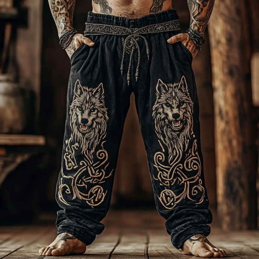 Men’s Vintage Viking Celtic Tree Of Life Patchwork Print Casual Pants