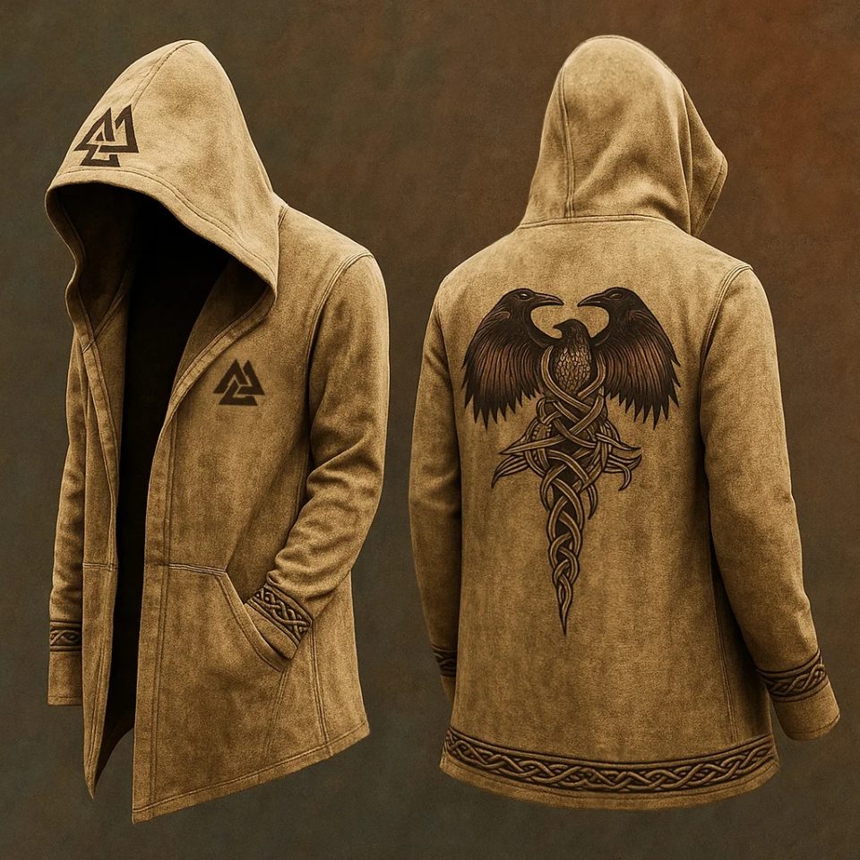 Men’S Vintage Viking Totem Art Hooded Jacket