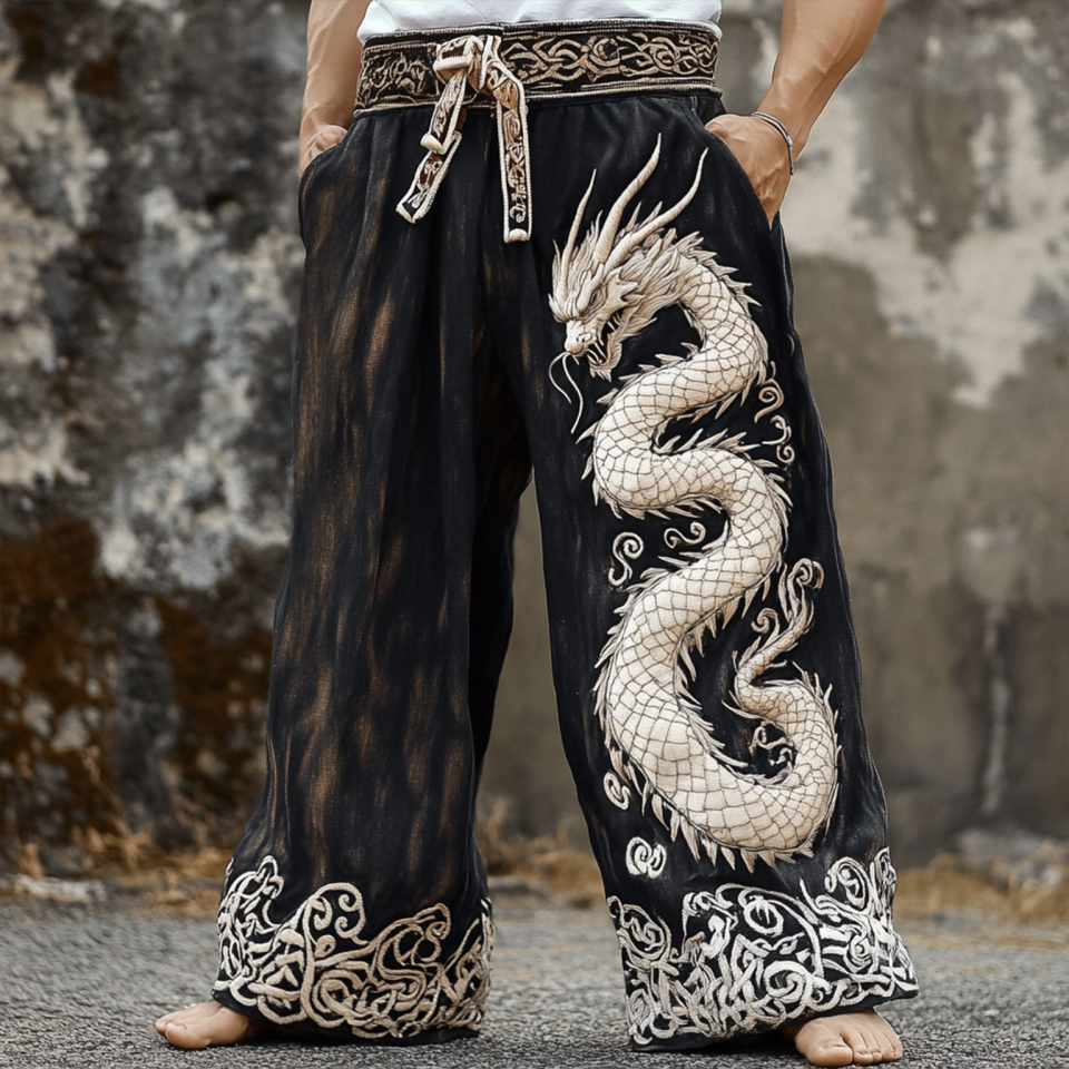 Men’s Vintage Two-tone Viking Tree Of Life Inspired Bohemian Summer Casual Pants