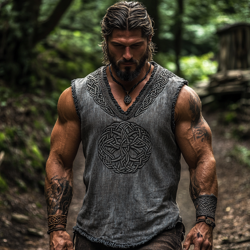 Men’s Vintage Viking Life Of Tree Celtic Knot Art Linen Blend T-shirt