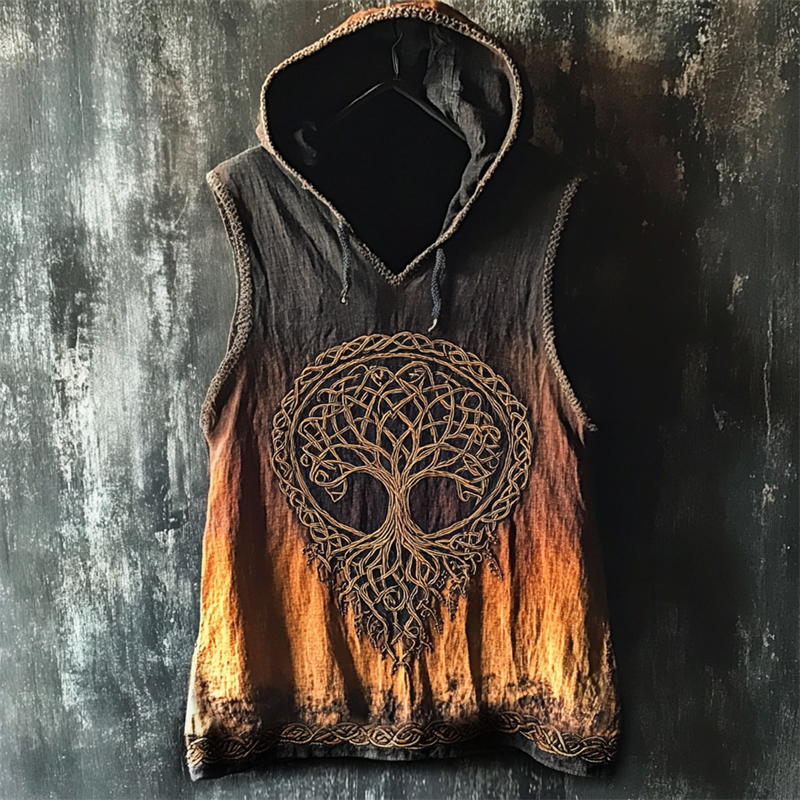 Men’s Celtic Tree Of Life Gradient Dyed Hooded Linen Vest