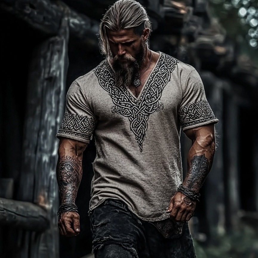 Men’s Nordic Viking Mythology Celtic Totem Hooded T-shirt