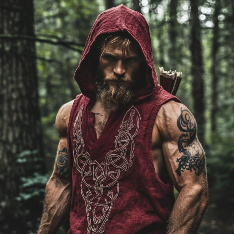 Vintage Viking Celtic Embroidery Art Linen Long Loose Wide-leg Pants