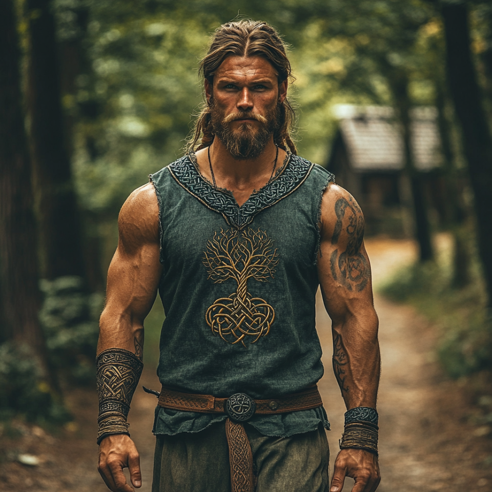 Men’s Viking Celtic Tree Of Life Washed Hooded Tank Top