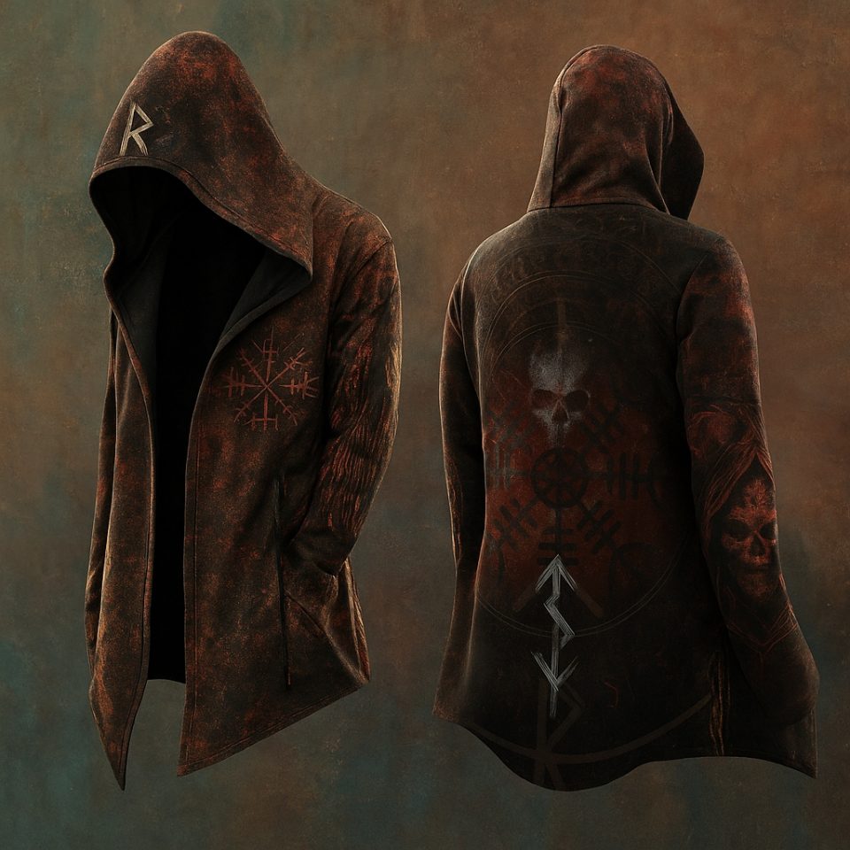 Men’s Viking Mythology Raven Lævateinn Celtic Totem Hooded Jacket